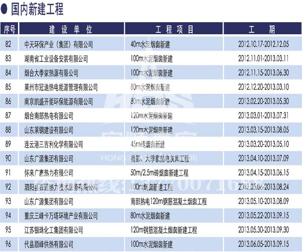 宏順建設(shè)工程有限公司是國家批準(zhǔn)成立的專業(yè)高空作業(yè)企業(yè):承攬過(國內(nèi).國外)煙囪新建、煙囪防腐、磚煙囪新建、煙囪改造、煙囪維修、煙囪脫硫防腐、煙囪拆除加高、煙囪滑膜等高空作業(yè)工程。具有“不搭腳手架 、 不需要停產(chǎn)”施工特點(diǎn)。